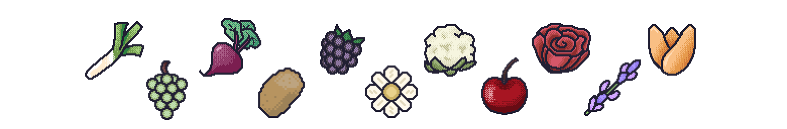 Unlock new plants as you progress through the game! If you harvest a plant enough times, you gain information about that plant in your Almanac. Each plant is different. Some take more watering to fully grow, but reward you with multiple drops or regrows.