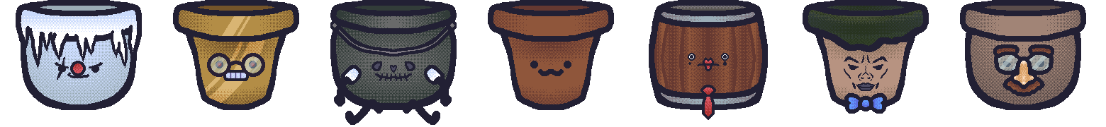 Unlock different plant pots, faces and accessories through different requirements like 'amount of water drops created', 'amount of high quality plants harvested', 'amount of Almanac entries completed', and more! You can completely decide what your pot looks like. If you want a regular terracotta, faceless pot, you can even unequip the face.